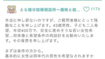 なんG 【画像】婚活女子「”普通の男性”の条件がこちら」