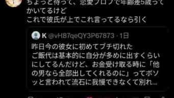 嫌儲 女さん「彼氏も飯代なんて当たり前のように奢ってくれてるから飯代ごときでキレる男が恋愛してるのみてまじ地獄だなって思った笑」