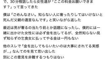 嫌儲 東京の40代の氷河期世代女さん、居酒屋で偶然会って話した男性に突然『奢ってくれ』と要求し出して炎上www