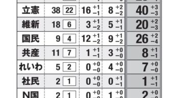嫌儲 【画像】夏の参院選予測される議席数、自民-11公明-2立民+2維新+2民民+17共産-3れ新+2