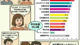 嫌儲 参院選候補者平均年齢…社民60歳、自民57歳、共産党53歳、チームみらい35歳