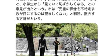 嫌儲 公園とかにある裸体像、ポリコレの影響で絶滅へ「児童の裸像を不特定多数が目にするのは望ましくない」