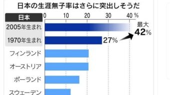 嫌儲 日本人の生涯無子率、驚異の42%に😱…OECD諸国の中でぶっちぎり1位😭…ジャップ滅亡へ🙏…