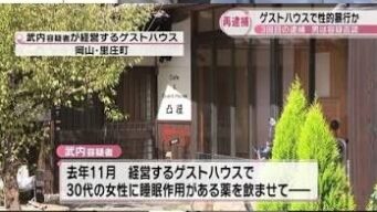 嫌儲 女性宿泊客10人に薬物入りの酒を飲ませてレイプ。 ゲストハウス経営・武内俊晴さん(51歳)。 懲役26年の実刑判決!
