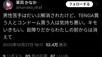 嫌儲 女子「TENGA買う人とコンドーム買う人は気持ち悪い。キモいきもい。目障りだからわたしの前からは消えて」