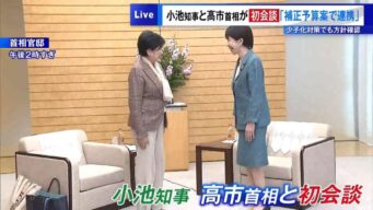 嫌儲 【高市会談】 長年、日本初の女性首相を目指し争った 百合子と早苗「国と都の補正予算で連携するわよ!」 首相官邸で初会談