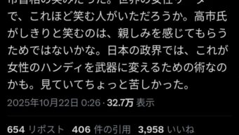 嫌儲 高市早苗首相の作り笑顔に批判殺到「日本の女性はこんなことまで強いられないといけないのか」