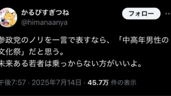 嫌儲 X民「参政党のノリを一言で表すなら、中高年男性の文化祭」