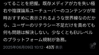 嫌儲 津田大介「陰謀論系YouTuberが流行りすぎてることは大問題、プラットフォーム規制を進めないと大変なことになる」