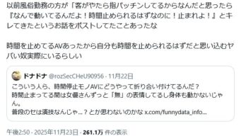 なんG 【恐怖】風俗嬢「客のおっさんが指パッチンで時間止めてレイプしようとしてくるヤバい奴だった…」